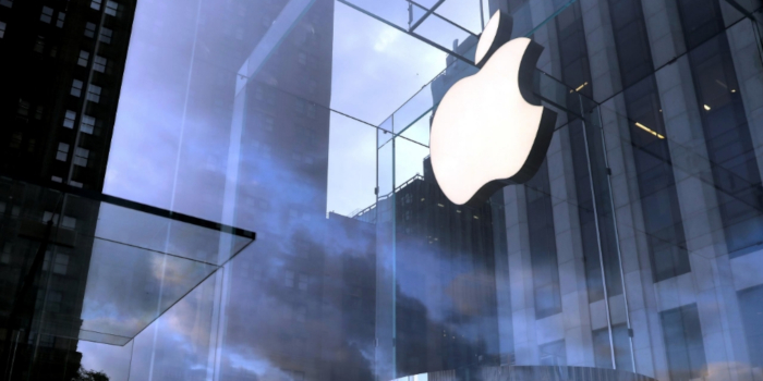 Логотип Apple Inc. висит у входа в магазин Apple на 5-й авеню в Манхэттене, Нью-Йорк, США, 16 октября 2019 года. REUTERS / Mike Segar
