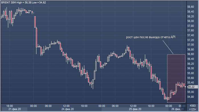 Отчет API составляется на основе информации, которую предприятия предоставляют на добровольной основе. Он традиционно предшествует публикации Министерством энергетики США официальной еженедельной статистики, которая будет представлена вниманию участников рынка в среду, 26 февраля, в 18:30 мск.