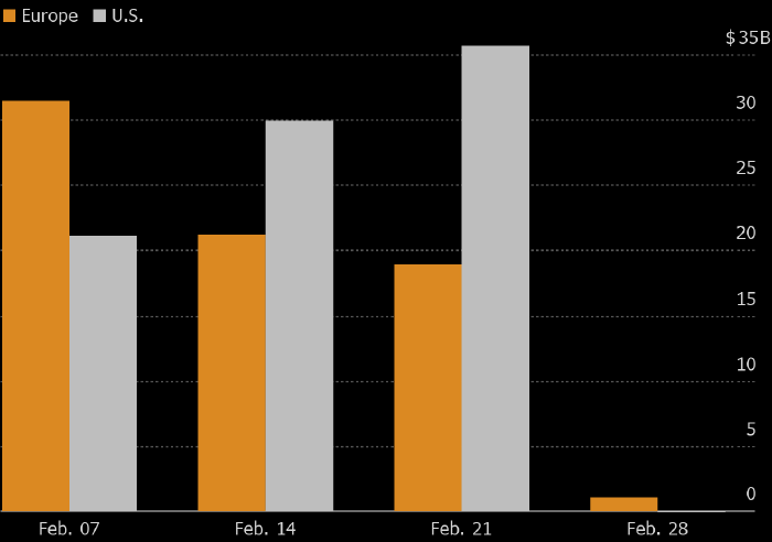 Это — внезапный поворот событий для рынка, на котором инвесторы привыкли сметать любые облигации в погоне за доходностью. Начало года оказалось для долгового рынка Европы рекордным, а в США бросовые облигации пользовались рекордным спросом за последние как минимум 10 лет.