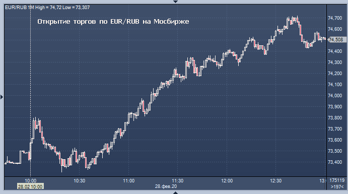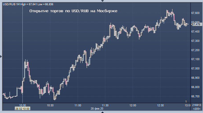 Таким образом, по официальному курсу ЦБ доллар вырос к рублю на 1 рубль и 39 копеек, а евро вырос к рублю на 2 рубля и 8 копеек по сравнению с официальным курсом пятницы. Объем торгов на Московской бирже к 12:58 мск пятницы составил 1 146.4915 млрд рублей или 17 474.4215 млн долларов. Курс рубля на Мосбирже сегодня сильно упал, поскольку мировой финансовый рынок накрыла самая настоящая паника. Люди боятся замедления темпов роста мировой экономики из-за распространения коронавируса.