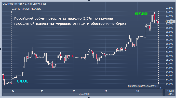 Рубль упал до 67.10 за доллар из-за нефти и Сирии