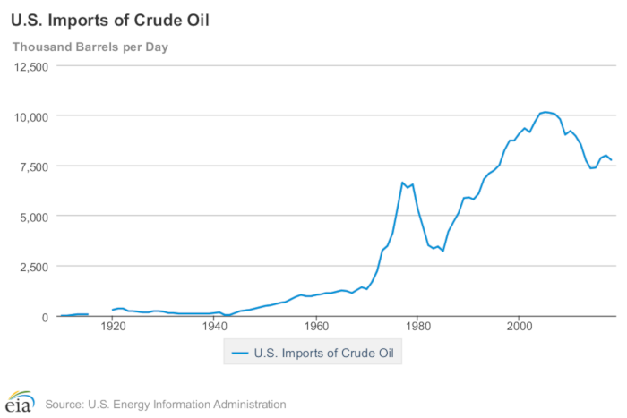 Благодаря этому общий импорт нефти в США сократился в прошлом году до 6.79 млн баррелей в день — минимального значения с 1993 года.