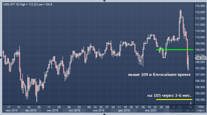 Доллар/иена может упасть примерно до 105 через три-шесть месяцев, но пара может вырасти в ближайшем будущем по мере восстановления цен на акции.