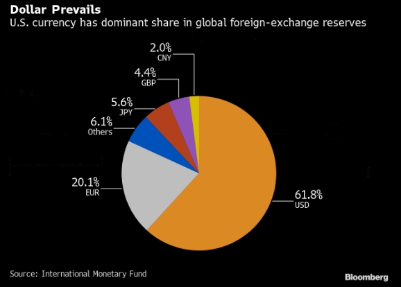 Статус доллара как убежища наиболее очевиден в валютных активах глобальных управляющих резервами, то есть среди самых консервативных инвесторов в мире. Согласно последним данным Международного валютного фонда, на долю доллара пришлось 62% от общего объема активов, по сравнению с 20% для евро и всего 6% для иены.