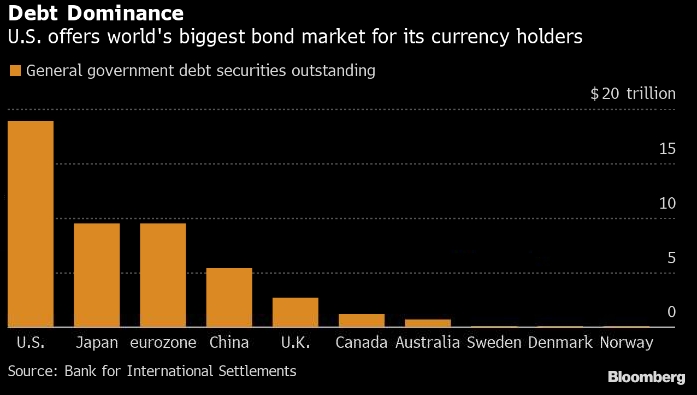 Американская валюта также предлагает самый ликвидный рынок облигаций в мире, а это означает, что у владельцев валюты нет проблем с размещением денежных средств.