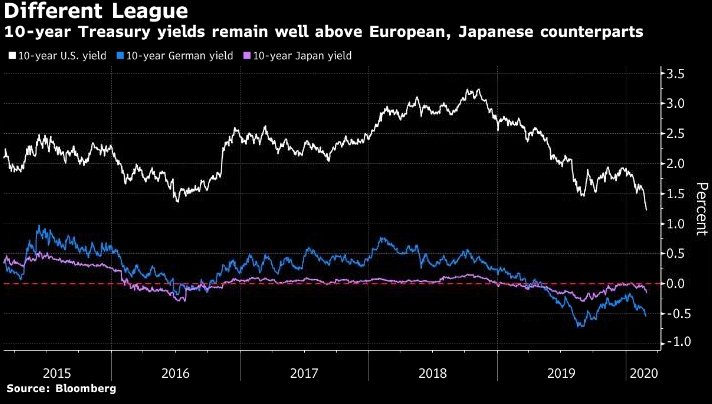 Еще один ключевой фактор в пользу американской валюты заключается в том, что казначейские обязательства рассматриваются как лучший в мире безрисковый актив, и при этом они приносят доход больше, чем их европейские и японские аналоги. Даже после падения до рекордно низкого уровня ориентир доходности 10-летних казначейских облигаций значительно превышает аналогичный показатель на один процентный пункт.