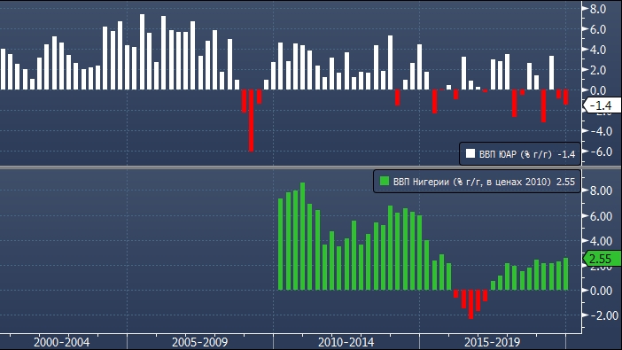 Примечательным событием стало то, что по итогам прошедшего года ЮАР утратила звание крупнейшей экономики Африки: с результатом в $352 млрд — $402 млрд она уступила его Нигерии. Темпы роста в последней в четвертом квартале превзошли прогнозы и составили 2.55%, при этом ожидается, что они в обозримом будущем останутся выше, чем у ЮАР.