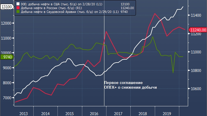 Саудовская Аравия и Россия ранее объединили силы для поддержания цен. Почему же решение о наращивании добычи этими странами обязательно должно означать окончание сотрудничества, а не попытку сохранить долю на рынке не в ущерб друг другу, а за счёт американских производителей.