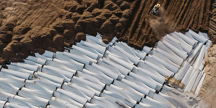 На фото: захоронение лопастей ветряков в Вайоминге, США. Лопасти изготавливаются из композитных материалов, которые на сегодняшний день не подлежат переработке (Бенджамин Расмуссен/Bloomberg Green)