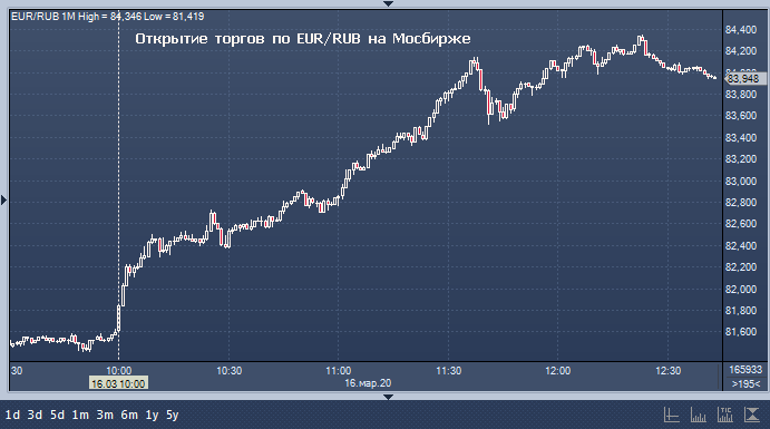 Таким образом, по официальному курсу ЦБ доллар вырос к рублю на 94 копейки, а евро вырос к рублю на 88 копеек по сравнению с официальным курсом субботы. Объем торгов на Московской бирже к 12:38 мск понедельника составил 1 085.1216 млрд рублей или 14 826.4555 млн долларов. Курс рубля сегодня возобновил падение на фоне аналогичной негативной динамики нефти, сырьевых и развивающихся валют, а также других сегментов мирового рынка в условиях ускорения распространения коронавируса вне Китая, несмотря на выглядящую значительной поддержку ФРС США. Инвесторы боятся, что новые шаги мировых регуляторов не помогут мировой экономике.