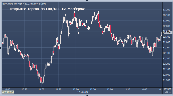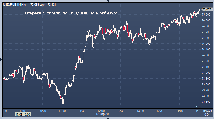 Таким образом, по официальному курсу ЦБ доллар упал к рублю на 24 копейки, а евро упал к рублю на 44 копейки по сравнению с официальным курсом вторника. Объем торгов на Московской бирже к 14:28 мск вторника составил 1 438.8822 млрд рублей или 19 411.2499 млн долларов. Курс рубля сегодня вырос на открытии более чем на рубль к доллару и на полтора к евро, но к настоящему моменту полностью утратил все завоевания. Рубль полностью повторяет динамику мировых акций и нефти. В настоящий момент рубль абсолютно лишен собственных, уникальных драйверов. Ни заседание ЦБ, ни меры поддержки властей, ни уж тем более налоговый период не окажут никакого влияния на курс рубля. Только динамика нефти и американских акций определит его направление. Последние сейчас находятся во власти панических настроений. Когда пузыри схлопываются то там, то здесь, инвесторы начинают продавать даже такие защитные активы, как золото, чтобы компенсировать убытки в других местах. Рынки повторяют судьбу финансового кризиса 2008-9 годов: паника в связи с предстоящей рецессией и настроения — все, остальное — ничто.