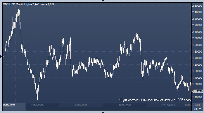 Британский фунт достиг минимальной отметки с 1985 года — курс GBPUSD пробил минимумы 2019 и 2016 года и достиг отметки в 1.1829. Общее укрепление позиций доллара на фоне страха перед коронавирусом, число зараженных которым в мире превысило отметку в 200 000 человек, усиливается опасениями относительно последствий политики британских властей.