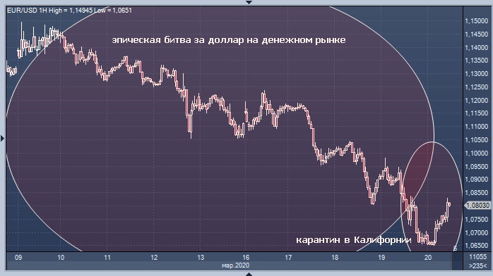 «Доллар продается частично из-за опасений, что, если за Калифорнией последуют и некоторые другие крупные штаты, безработица резко возрастет и подтолкнет США куда-то между рецессией и депрессией», — сказал Марк Грант, главный глобальный стратег-аналитик B. Riley FBR Inc.