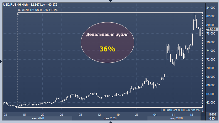 Норвежская крона, которая с 6 марта потеряла 22% своей стоимости по отношению к доллару и установила новый рекордный минимум в районе 12.13, вчера отняла «пальму первенства» девальвации у рубля, по подсчетам Bkoomberg. Как Норвегия, так и Россия получают много валюты от продажи нефти. Ценовая война, развязанная Саудовской Аравией, привела к обвалу нефти с 50 до 24 долларов за баррель. Сейчас нефть восстановилась до 30 долларов. Падение цен на нефть приведет к сокращению притока валюты в обе страны. Торговый профицит сменится дефицитом, что окажет негативное влияние на курсы нацвалют.