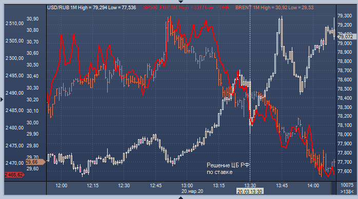 Однако основным драйвером для российской валюты остаются изменения в атмосфере на финансовых рынках и ситуация на рынке «чёрного золота». Фьючерсы на американские фондовые индексы после ралли в начале дня корректируются ниже, а цена нефти вновь оказалась ниже $30 за баррель, так что усиление давления на рубль выглядит закономерным.