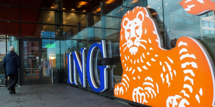 Мужчина проходит мимо логотипа ING Group NV в филиале в Амстердаме, Нидерланды, 9 января 2014 года. REUTERS/Toussaint Kluiters