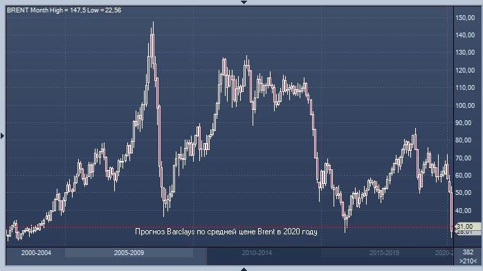 В этом году средняя цена барреля нефти Brent и WTI составит $31 и $28 соответственно, что на $12 ниже предыдущих оценок, прогнозирует банк.