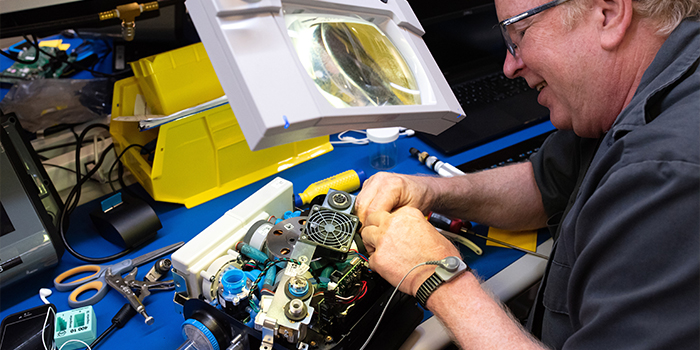 На фото: работник Ventec Life Systems за сборкой аппарата ИВЛ
