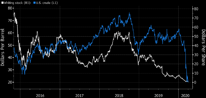 Что касается Whiting Petroleum, то ее проблемы начались задолго до вспышки коронавируса, так как компания по-настоящему так никогда и не оправилась от обвала цен на нефть 2014-2016 года.