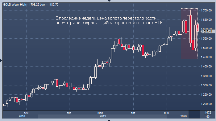 Впрочем, это не является проблемой, так как большинство инвесторов, торгующих GLD, не планируют поставки физического металла и лишь спекулируют на динамике его цены, полагает аналитик Bloomberg Intelligence Эрис Балчунас.