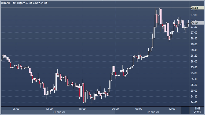 Цены на нефть Brent и WTI сегодня подскочили более чем на 10% до $27,26 и $22,40 соответственно.