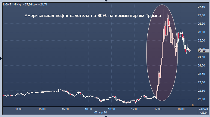 Нефть в США, добываемая в штате Техас, выросла более чем на 30% до 25.36 долл. за баррель, что привело к лучшему результату в истории. Международный бенчмарк Brent подскочил на 24%.