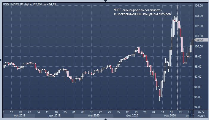 Индекс доллара продолжает восстанавливаться после падения в конце марта, и валютные стратеги Nordea полагают, что динамика доллара лишний раз подтверждает их мнение о том, что пока не время продавать американскую валюту, несмотря то, что ФРС начала фактически бесконечное QE (количественное ослабление).