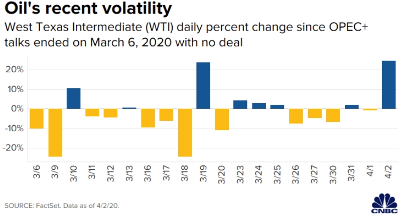 Нефтяные цены в четверг выросли более чем на 20% после появления сообщений о возможной сделке по сокращению производства на огромным 10 миллионов баррелей в день, но один аналитик по-прежнему предсказывает, что сырая нефть Брент опустится до $10 за баррель.