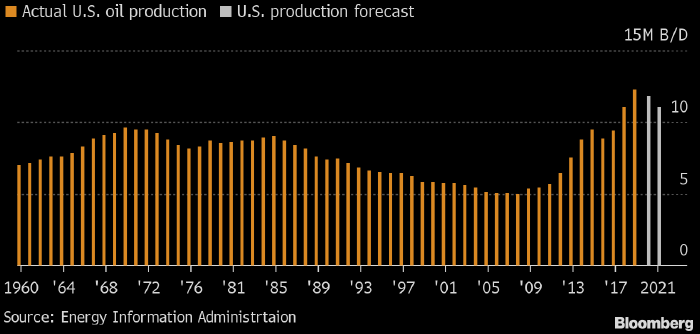 Ожидается, что в марте 2021 года добыча нефти в США достигнет дна на уровне 10.91 млн б/д.