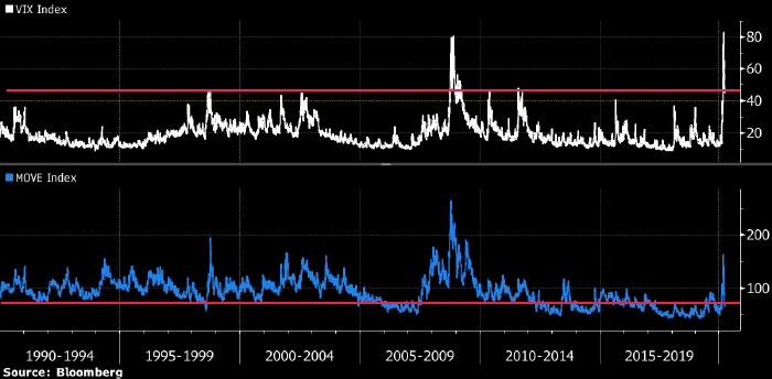 «Подобное довольно редкое сочетание сильного страха на рынке акций и общего спокойствия на рынке облигаций имеет тенденцию предвещать сильный рост фондового рынка», - пишет главный инвестиционный стратег Leuthold Group Джим Полсен. - «Когда VIX поднимался выше 80-го процентиля, а MOVE одновременно опускался ниже 50-го, последующий рост рынка акций в годовом выражении исторически составлял в среднем 21% против 7%, которые наблюдались во все остальные периоды времени».