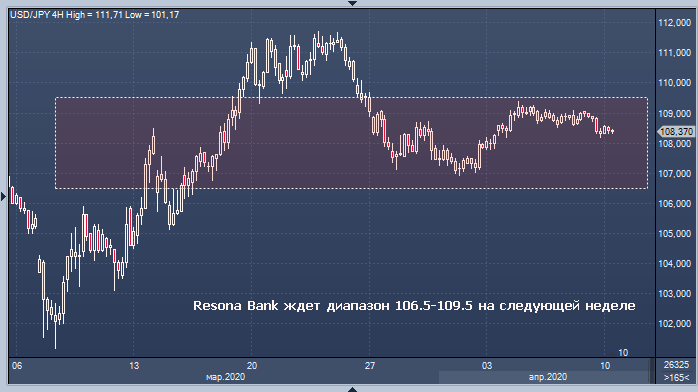 Доллар/иена снизился на фоне низких объемов, когда многие рынки закрылись на Страстную пятницу; многие японские инвесторы занимают выжидательную позицию. USD/JPY, вероятно, упадет до 106.50 на следующей неделе, в то время как верхняя граница, как ожидается, будет ограничена около максимума этой недели около 109.50. Иена может ослабнуть против кросс-валют.