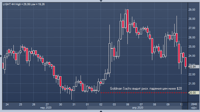 Цены на месторождениях, расположенных внутри страны (ProFinance.ru: т. е. без прямого выхода к побережью), продолжат снижаться в ближайшие недели по мере дальнейшего заполнения хранилищ. Скорее всего, это приведет к увеличению контанго во фьючерсных контрактах на нефть WTI и создаст риски снижения котировок ниже $20 за баррель.