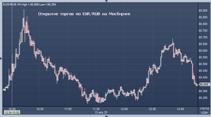 Таким образом, по официальному курсу ЦБ доллар упал к рублю на 23 копейки, а евро упал к рублю на 20 копеек по сравнению с официальным курсом субботы. Объем торгов на Московской бирже к 13:12 мск понедельника составил 621.8331 млрд рублей или 8 431.4636 млн долларов. Курс рубля сегодня укрепился на фоне заключения сделки ОПЕК+, несмотря на падение нефти.