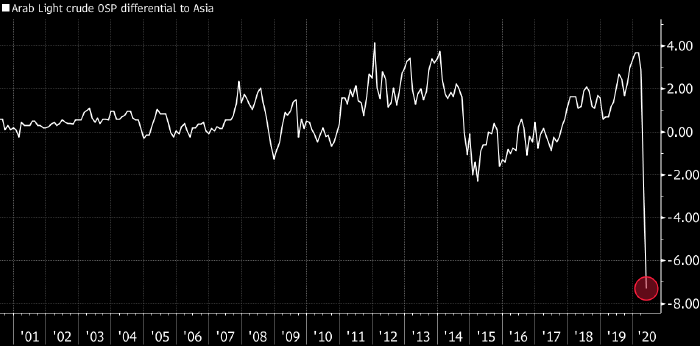 Saudi Aramco снизила майские цены на свою флагманскую смесь Arab Light для азиатских покупателей на $4.20 за баррель относительно апреля, что превысило ожидавшийся дисконт в $3.63 за баррель (ProFinance.ru: график в начале статьи отражает размер дисконта Arab Light для Азии относительно средней цены Oman/Dubai). Причем, произошло это на следующий день после заключения новой сделки ОПЕК+.