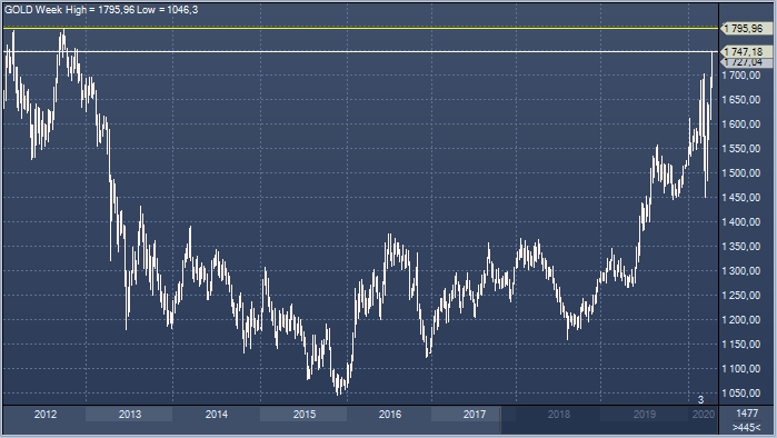 Стоит отметить, что слабость валюты США отчасти позволила ценам на золото достичь нового максимума за 7,5 лет около $1748 за тройскую унцию. Поскольку повсюду страны увеличивают бюджетные расходы на фоне сокращения долгосрочной доходности золото остается привлекательным активом для управляющих инвестфондами и резервами центробанков.