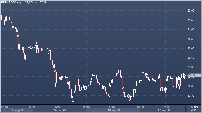 Цены на нефть завершают торги в пятницу разнонаправленной динамикой. Котировки Brent +2,5% до $28,50 за баррель. Снижение с начала года составляет 56,7%. При этом американская нефть WTI дешевеет в этом году на 70%. Сегодня она теряет в цене 8,3% до $18,20 за баррель. Минимум дня котировки WTI сформировали на $17,3 за баррель - самая низкая цена с ноября 2001 г.