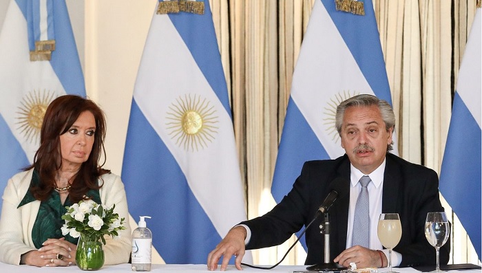 На фото: вице-президент Кристина Киршнер и президент Аргентины Альберто Фернандес (Эстебан Коллацо/AFP/Getty Images)