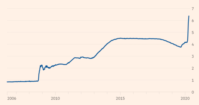 Инвесторы, компании и домохозяйства накапливали валюту в конце февраля и в начале марта, когда по миру прокатилась волна эпидемии, а экономики одна за другой начали уходить в локдаун. Бизнес оказался на мели.