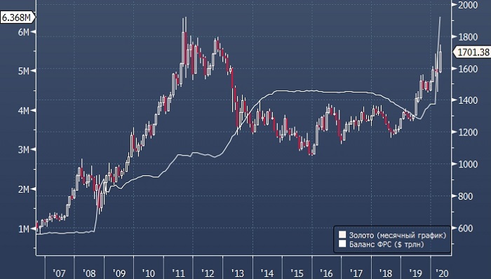 Конечно, путь золота к новым максимумам вряд ли будет быстрым и однонаправленным, учитывая падение спроса со стороны развивающихся стран, в частности со стороны ювелирной промышленности в Индии и Китае, сильный доллар и снижение волатильности. Однако фактические удвоение балансов центральных банков и дефицитов бюджетов развитых стран в попытке смягчить последствия пандемии, которая даже при таких мерах грозит серьёзным падением ВВП, дает повод быть уверенным в том, что золото вырастет — его ФРС напечатать не может. Bank of America ожидает, что в следующем году средняя цена золота составит $2063 за унцию, и сообщает о повышении прогноза на 15 месяцев с $2000 до $3000 за унцию.