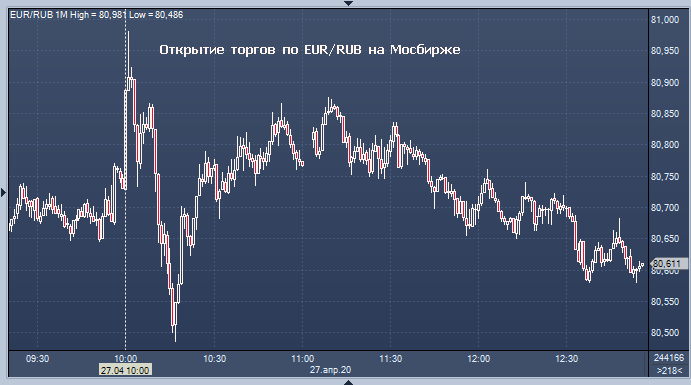 Таким образом, по официальному курсу ЦБ доллар упал к рублю на 22 копейки, а евро вырос к рублю на 51 копейку по сравнению с официальным курсом субботы. Объем торгов на Московской бирже к 12:49 мск понедельника составил 613.3923 млрд рублей или 8 209.6178 млн долларов. Курс рубля сегодня незначительно укрепляется на фоне консолидации нефти и подъема мировых акций после смягчения монетарной политики Банком Японии и оглашения планов снятия ограничительных мер в ряде стран.