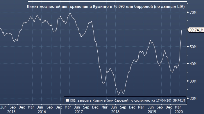 Аналитики UBS отмечают, что, несмотря на довольное значительное вынужденное снижение добычи (по оценке Woodmac, оно по состоянию на 24 апреля составило 2.32 млн баррелей в день), на фоне обвалившегося на 30 млн б/д спроса на нефть и нефтепродукты запасы продолжают стремительно расти. За прошедшие четыре недели запасы нефти подскочили на 132 млн баррелей в наземных хранилищах, в частности в США, Японии, Фуджейре и ARA, тогда как в танкерах они за тот же период выросли на 60 млн баррелей.