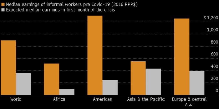 Снижение доходов в теневом секторе мировой экономики, вызванное пандемией коронавируса, вероятно, является «огромным», пишет в своем отчете Международная организация труда (МОТ). По ее оценкам, среднемировая зарплата «в конверте» сократилась в первый месяц кризиса на 60%.