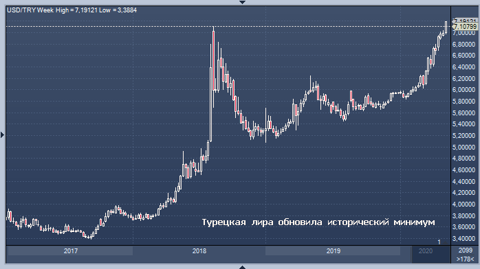 В среду турецкая лира упала на 1.3% и преодолела рекордно низкое значение времен валютного кризиса 2018 года, после того как регулятор продолжил сдерживать доступ трейдеров инвесторов на местный рынок, усугубляя опасения инвесторов по поводу истощенных резервов.
