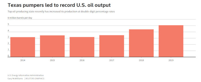 Третий по величине в США производитель сланцевой нефти Pioneer Natural Resources ожидает, что цены на нефть к концу года восстановятся как минимум до 45 за баррель. Даже когда американский бенчмарк WTI и другие мировые эталонные сорта нефти вернутся к 45 за баррель, очень немногие американские сланцевики смогут позволить себе расширять производство из-за высокого уровня долговой нагрузки, отметил исполнительный директор Pioneer Шеффилд. По его словам, на текущих уровнях цен лишь немногие компании в США могут покрыть свои производственные затраты.