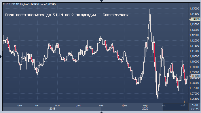 Уменьшение такого преимущества доллара США как более высокие процентные ставки — после недавнего резкого снижения ставки по федеральным фондам Федеральной резервной системы до 0.00%-0.25% в связи с пандемией коронавируса — должно позволить евро подняться до 1.14 доллара к концу года, где он будет торговаться и в 1-м полугодии 2021 года, отмечает Commerzbank.