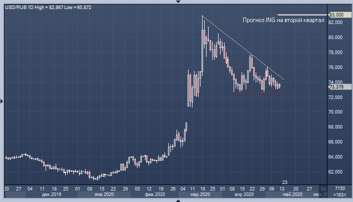В ING отмечают, что действия на валютном рынке ЦБ предполагают снижение рисков роста USDRUB к 80 — 85 рублям за доллар США в этом квартале, но предупреждают, что после окончания мая регулятор будет сокращать объем продаж. В то же время экономисты ожидают, что рубль может лишиться прежней поддержки со стороны платёжного баланса — до сих пор его благоприятный характер был одним из ключевых факторов роста. В ING напоминают, что с начала месяца Россия начала выполнять свою часть сделки ОПЕК+, что предполагает сокращение доходов от продажи нефти. Кроме того, в показателях платежного баланса вскоре начнёт проявляться отложенный эффект падения цен на нефть.