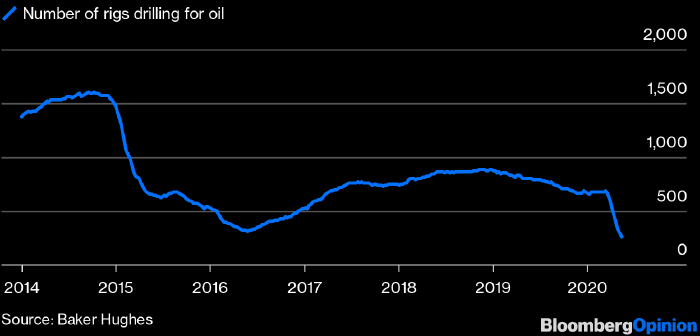 FGE написала 1 мая о том, что анализ квартальных отчетов добывающих компаний говорит о потенциальном сокращении добычи нефти в США на 3 млн б/д к концу июня. Похоже, что все к этому и идет.