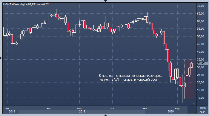 В последние недели июньские фьючерсы на нефть WTI продемонстрировали неплохой рост на фоне появления признаков восстановления спроса, сокращения мировой добычи и оптимизма относительно скорого появления вакцины от коронавируса.