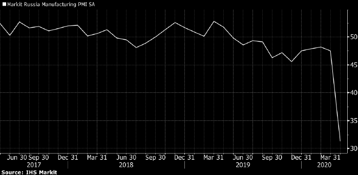 «Ограничительные меры продолжают действовать и в мае, поэтому падение ВВП России во втором квартале может оказаться более глубоким, что во время мирового финансового кризиса», - прогнозирует аналитик Bloomberg Economics Скотт Джонсон.