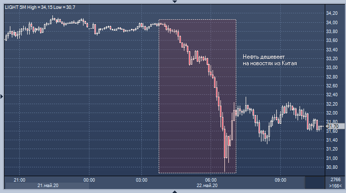 Цены на нефть Brent и WTI резко снизились после сообщения Китая об отказе от таргетирования ВВП в этом году из-за «большой неопределенности», обусловленной пандемией коронавиурса. Спрос на нефть в Поднебесной в этом году снизится на 5%, прогнозирует китайская China Petroleum.